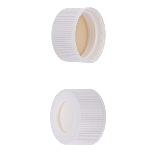 | Screw Top | 24-400 | PP | White Silicone Rubber / Beige PTFE | 45 Shore A | 3.2 mm | 100 |
