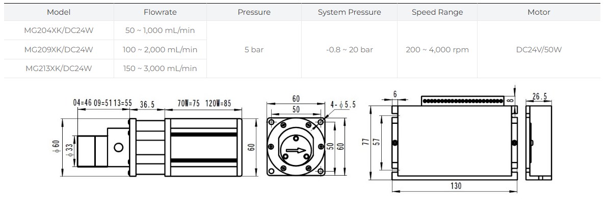 MG200XK/DC24W - BLDC모터 마그네틱기어펌프