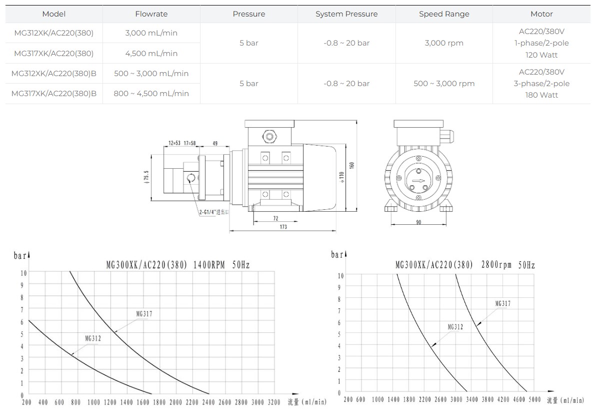 MG300XK/AC220(380) - AC모터 마그네틱기어펌프
