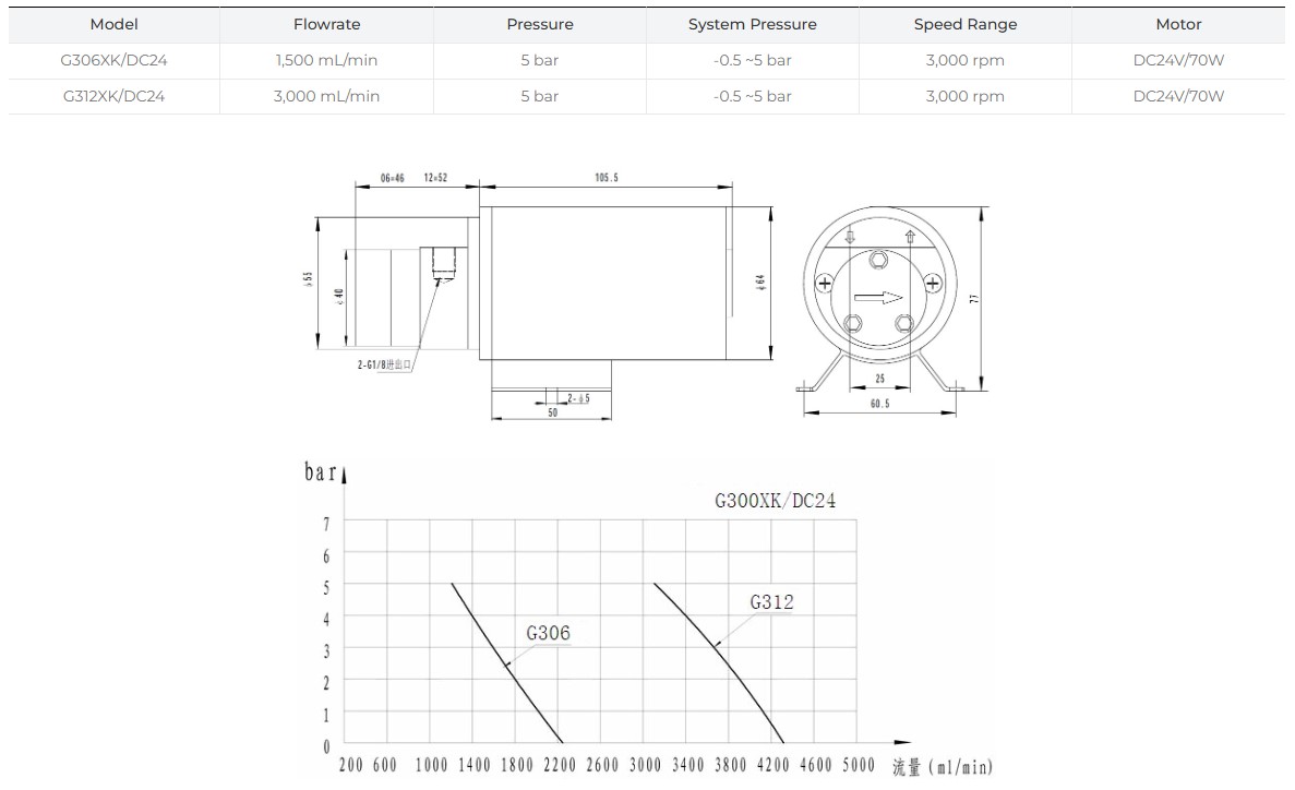[G300XK/DC24 - 마이크로 기어펌프, 브러쉬 DC 모터 타입]