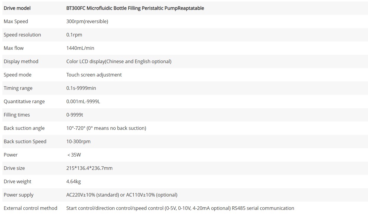 BT300FC microfluidic bottle filling peristaltic pump series is an intelligent filling peristaltic pump,