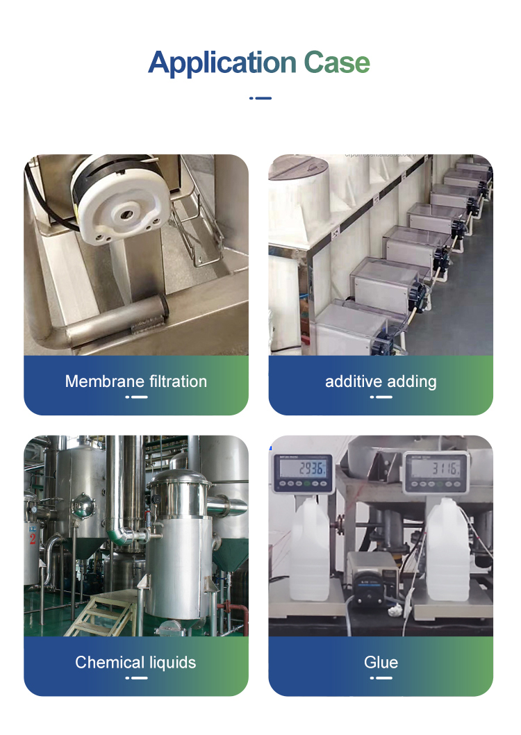 - Industrial peristaltic pump. Used for membrane filtration, additive adding, chemical liquid dispensing, and glue liquid dispensing.