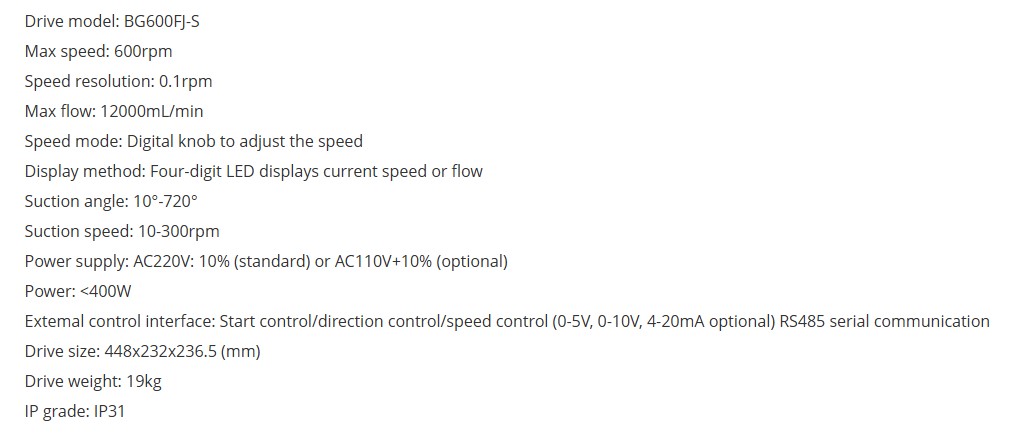 BG600FJ-S is an industrial peristaltic pump that can switch the transmission and distribution modes by adjusting the key position.