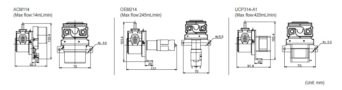OEM214 small peristaltic pumps adopted WP200 pump head and AC synchronous/DC Geard/Stepper motor options .