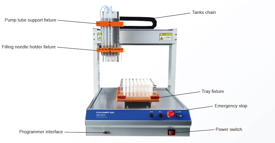 It helps realize quick liquid dispensing and mass production. Greatly improved work efficiency. High precision ensures reagents microfluid dispense.
