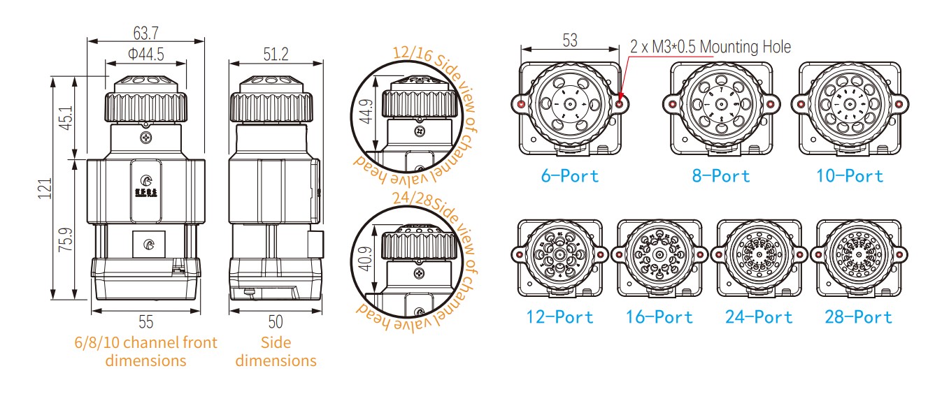 | Port to port volume (Dead Volume) | 27.5μl | 26.3/27μl | 24.1/25.1μl | 4.4μl | 4.7μl |