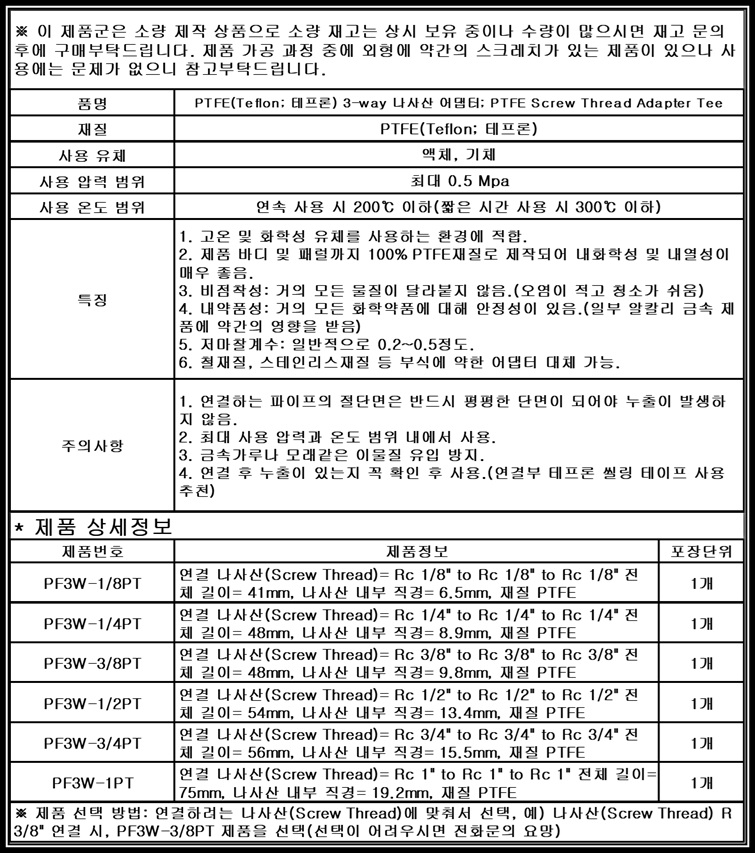 [Fitting] PTFE 테프론 3-way 나사산 어댑터 PT탭 (R탭) Female 암나사 테플론 커넥터 Connector