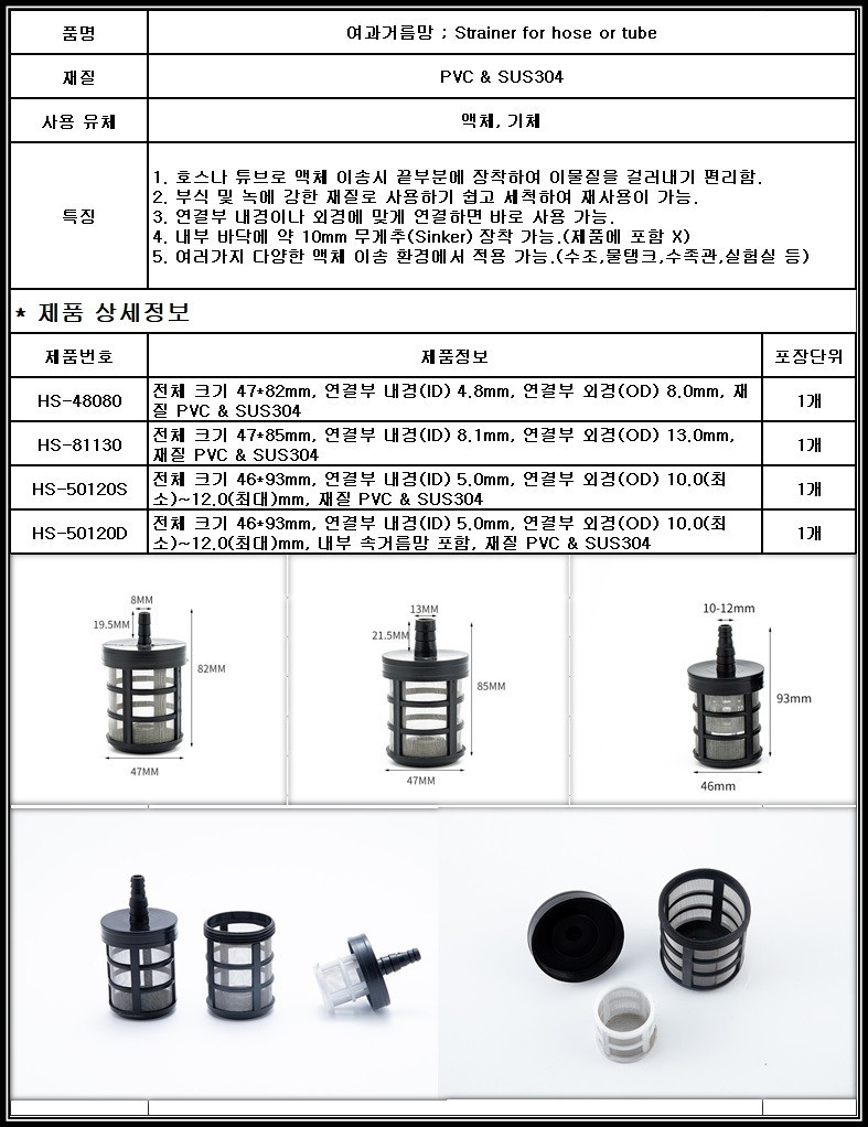 대형 여과 거름망 호스 튜브 필터 스트레이너 strainer