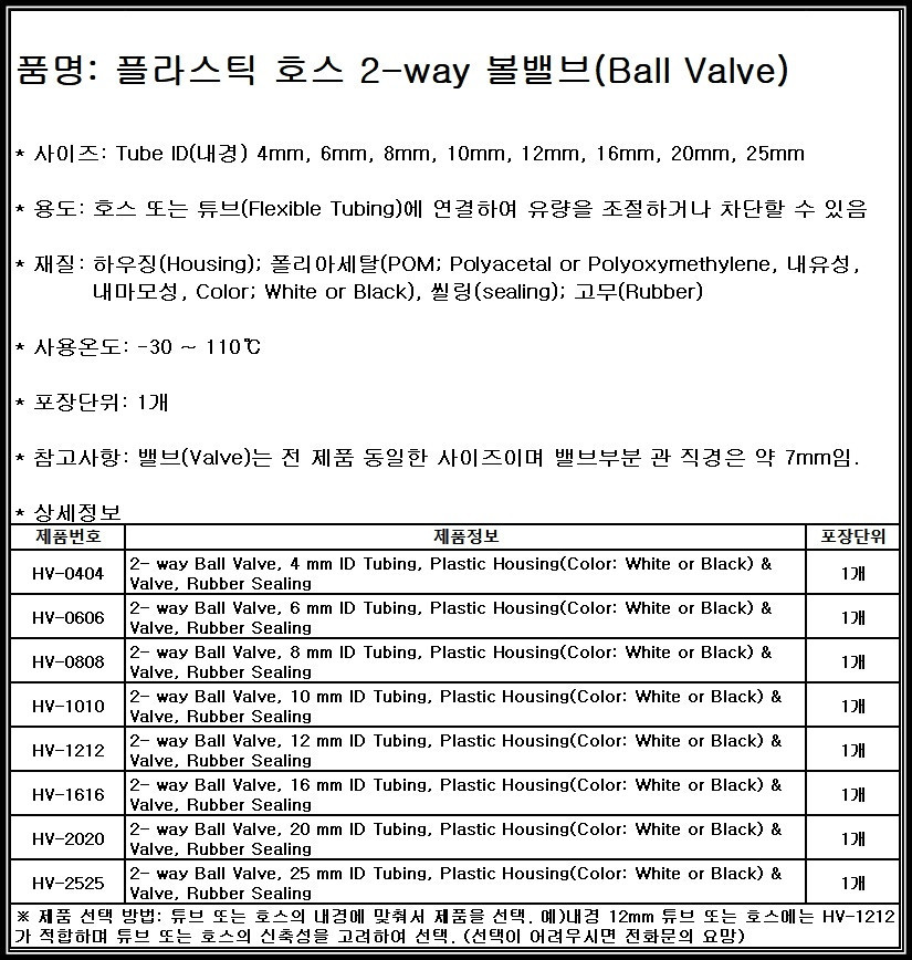 플라스틱 튜브 호스 볼밸브