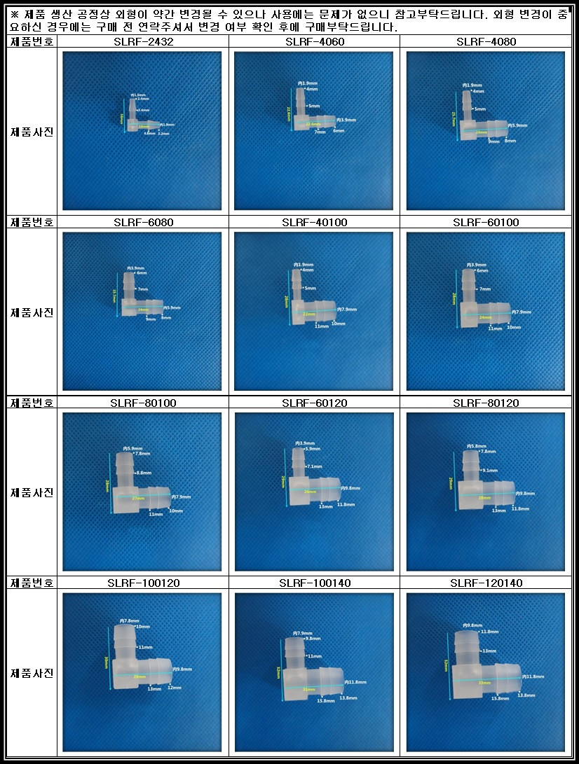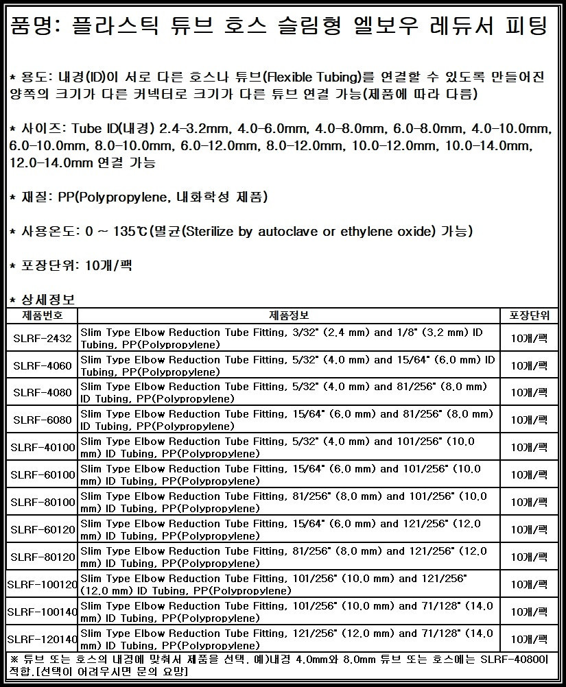 튜브 호스 커넥터 슬림형 엘보우 레듀서 피팅 PP 튜빙 Elbow 연결관 콘넥터 플라스틱