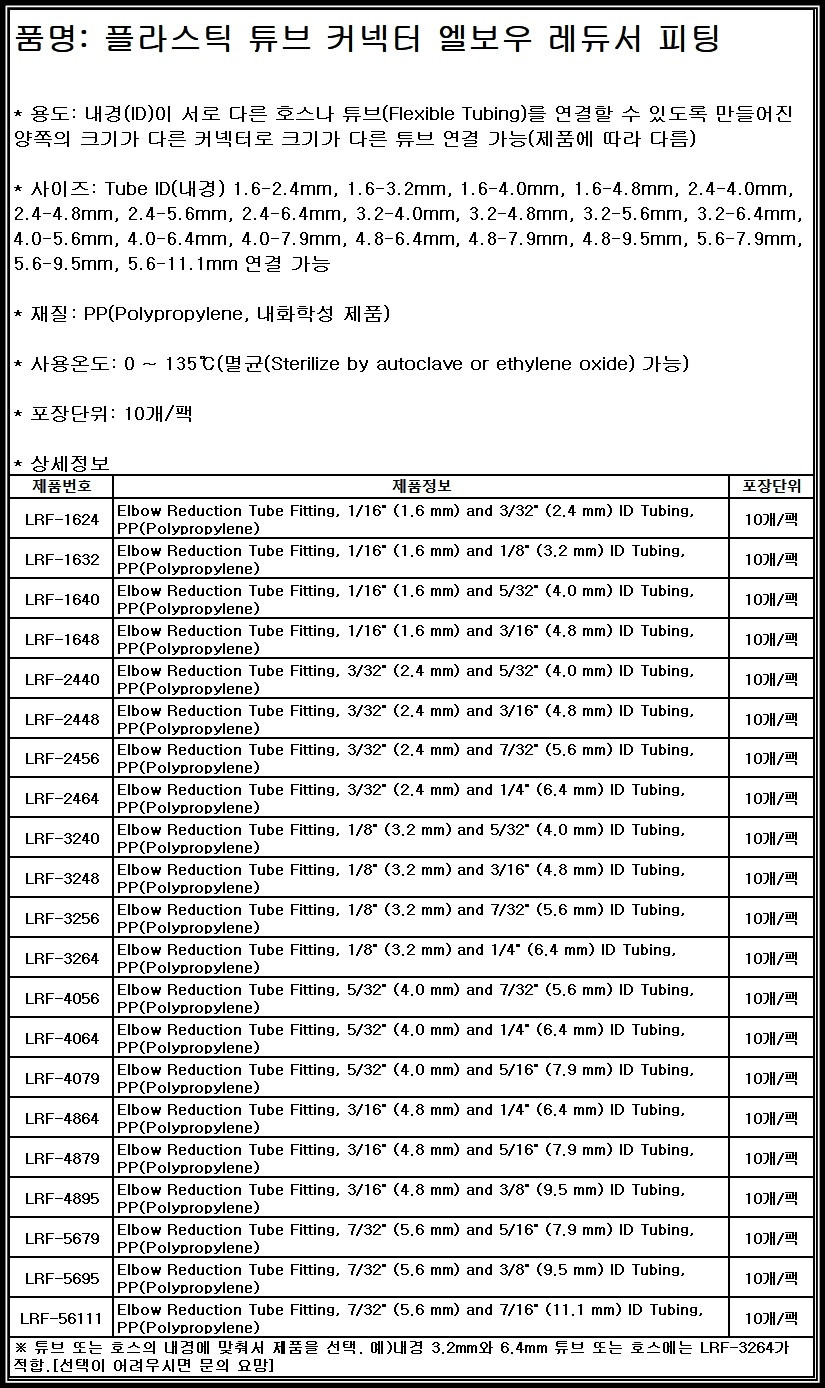 튜브 호스 커넥터 엘보우 레듀서 피팅 PP 튜빙