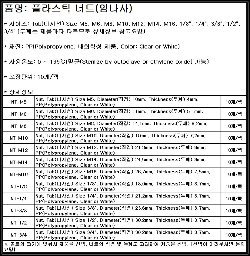 플라스틱 너트 Nut 인치 미리 inch mm PP [연결관 피팅 커넥터 콘넥터]