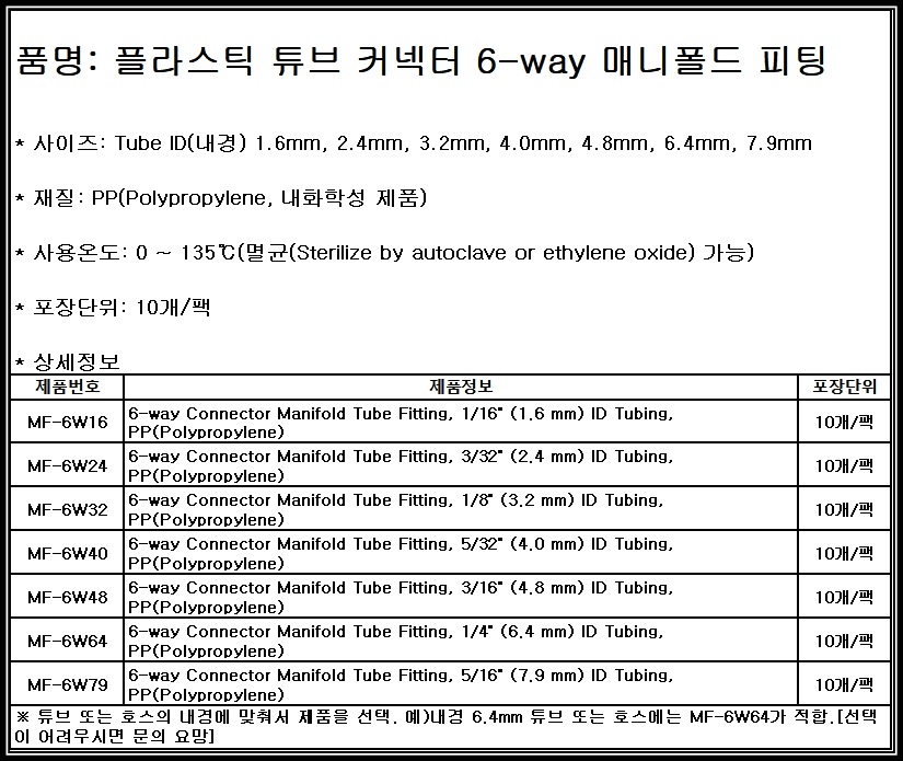 [Fitting] 튜브 호스 커넥터 6-way 매니폴드 피팅 PP