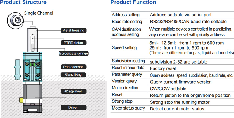 Small compact size, easy mounting, space-saving,long service life Industrial Syringe Pump with high precision in micro-liquid transferring and high performance. Wetted material borosilicate glass and PTFE, corrosion resistance, high temperature resistance, biocompatible and suitable for a variety of special media. Widely used in a variety of analysis equipment such as environmental analysis instruments, medical analysis instruments, non-standard sampling facilities in highprecision, etc.