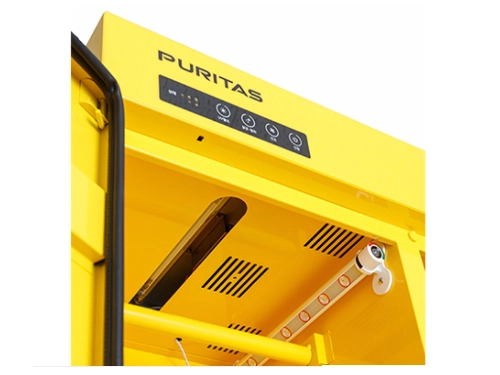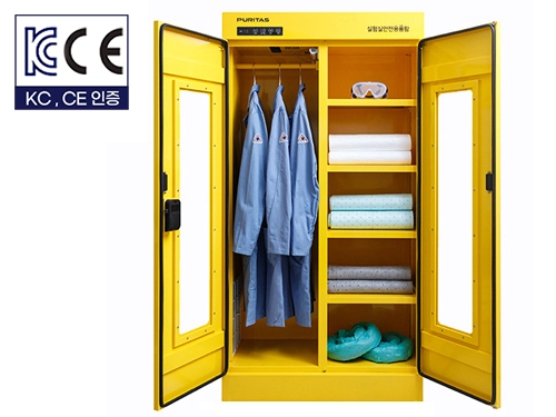 · 안전용품(화학물질유출대처키트,방독면, 안전화등) 보관과 동시에 실험복 살균,탈취,건조, · 기능이 적용된 안전용품 보관함